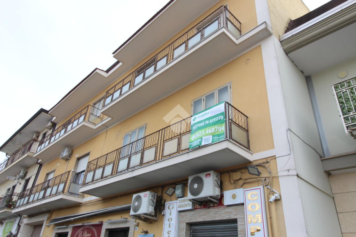 In via Nazionale Appia, a metà strada tra il Casello autostradale di Caserta nord e la Reggia di Caserta, proponiamo in affitto appartamento categoria A10, ad uso ufficio, al primo piano, senza ascensore, composto da ingresso, tre ampi vani, cucina, bagno, terrazzino e balcone fronte strada.